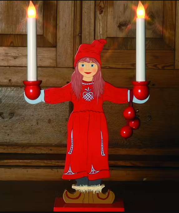Om du gillar nostalgisk och retroinspirerad juldekoration är den här ljustaken väl ändå ett måste? Ljustaken är gjord i trä och föreställer en flicka klädd i traditionell julklädsel från förr, och hon håller upp två ljus. Den går även att köpa som en pojke, och jag har båda som ett litet julset hemma i köket. Passa på att klicka hem dem på kampanj redan nu, för de här säljer slut
