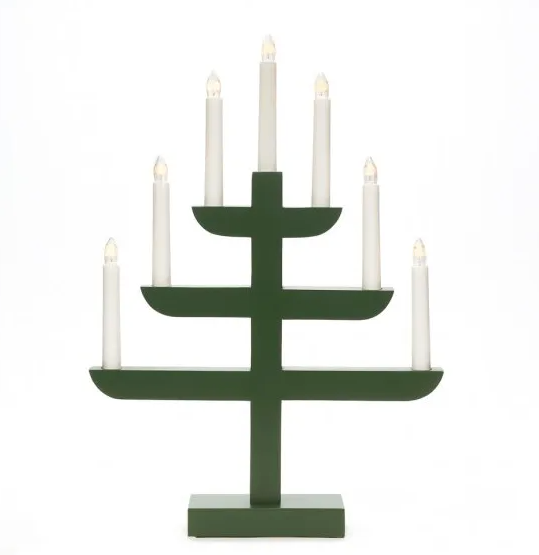 Grönt är skönt och hör definitivt julen till. Den här gröna ljusstaken kommer från Konstsmide. Den har en traditionell design med sju stycken ljuskällor. Den är enfärgad och avskalad och smälter därför enkelt in oavsett vad du har för typ av stil.