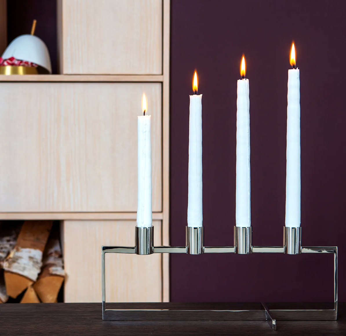 Gillar du en mer avskalad och minimalistisk stil är den här adventsljusstaken från Klong helt rätt för dig. Ljusstaken är gjord i rostfritt stål och har plats för fyra stycken ljus. Mellan den tredje och fjärde platsen finns ett litet stöd som gör att du ser ett kors när du ser på ljusstaken ovanifrån. En riktigt stilig detalj tycker vi.