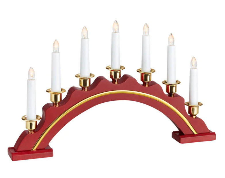 Föga oväntat är rött helt rätt i jul. Men den röda färgen tar detta år ännu mer plats än tidigare. I år är julpyntet rött och traditionellt. Ledordet är nostalgi. Därför tycker jag att den här sjuarmade adventsljusstaken tickar i alla boxar. Den har en riktigt julröd färg med guldiga detaljer och mässingsfärgade manschetter. Vill man finns den även i vitt.