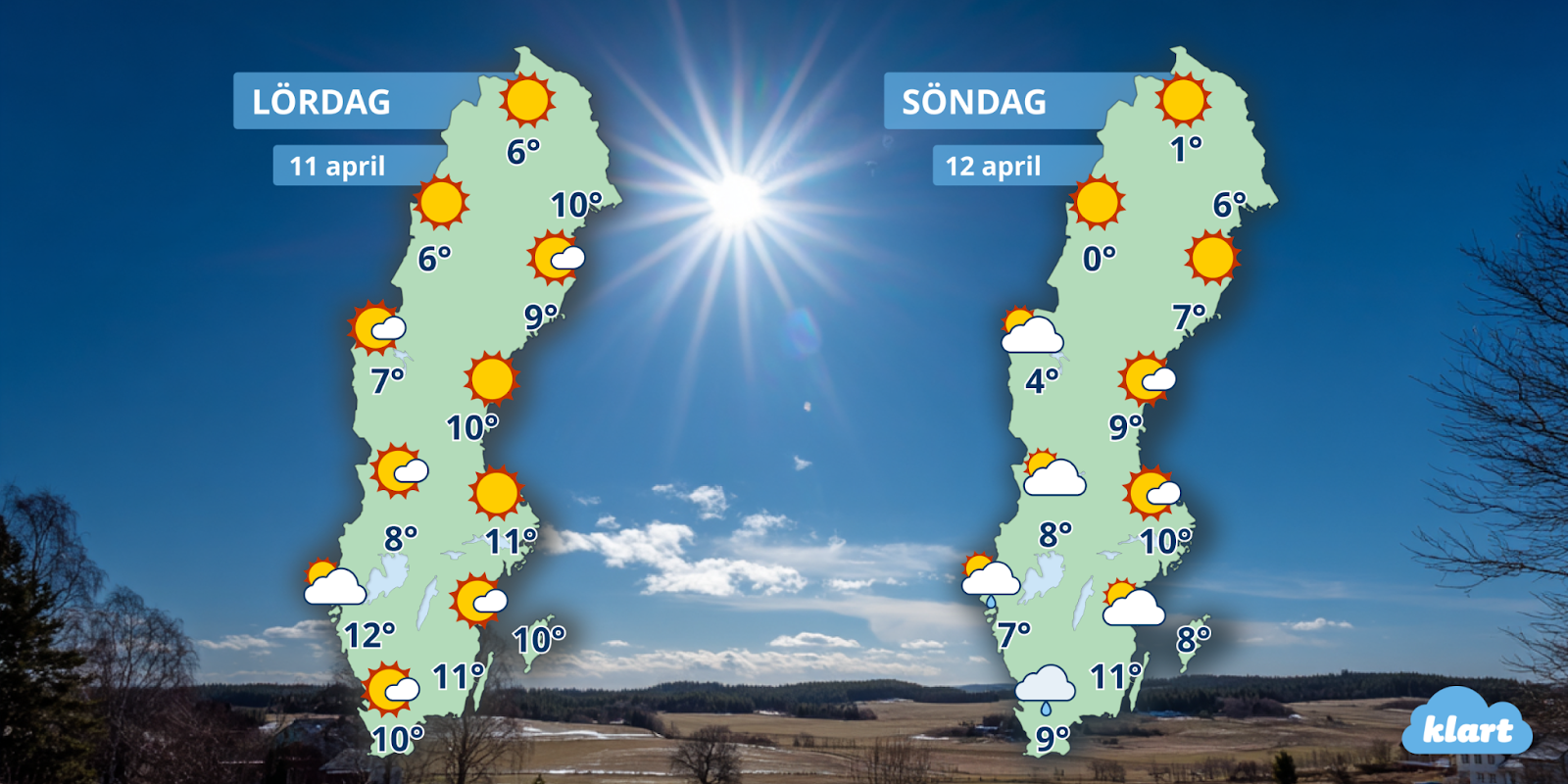 Prognos utfärdad fredagen den 10 april av meteorolog på Klart.