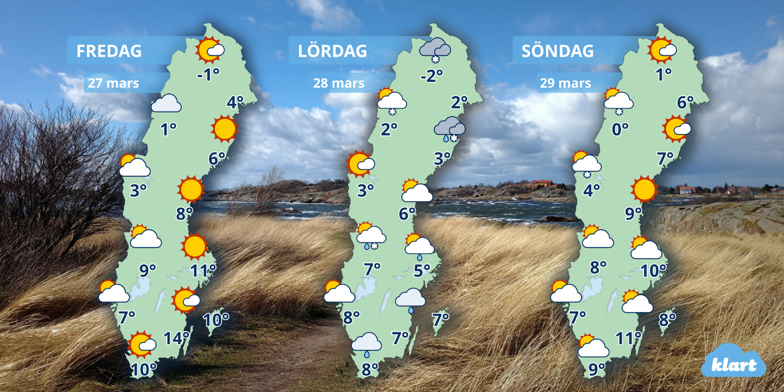 Prognos utfärdad torsdagen den 26 mars av meteorolog på Klart.
