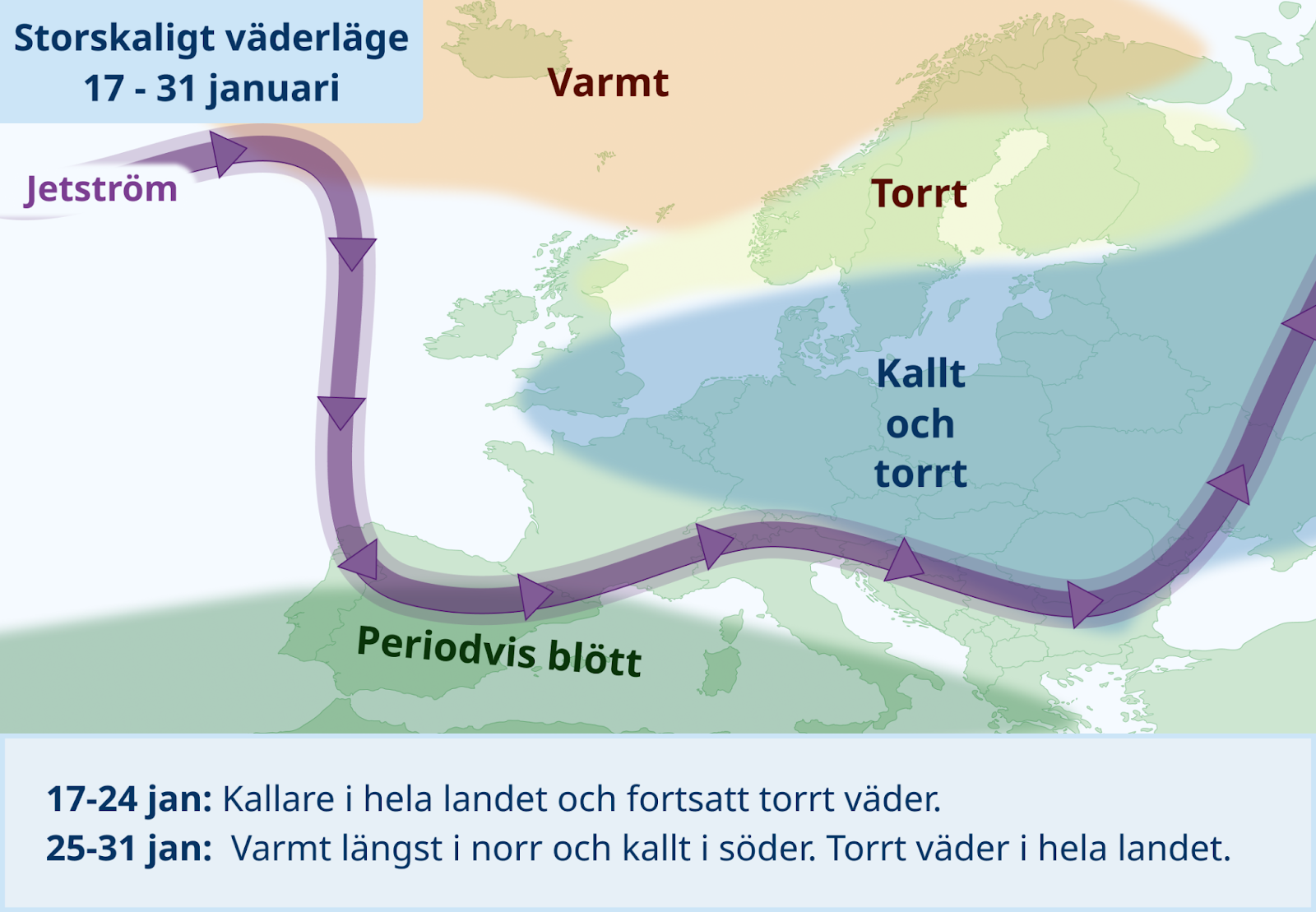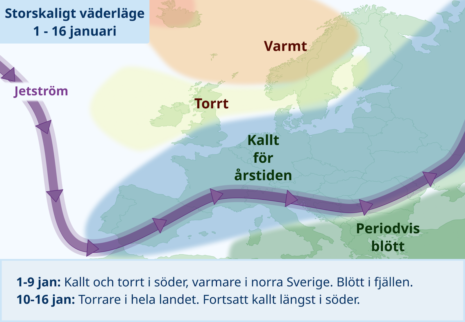 - MJO: En förstärkning skulle kunna gynna en starkare blockering senare i januari månad, vilket kan ge torrare väder även i södra Sverige.