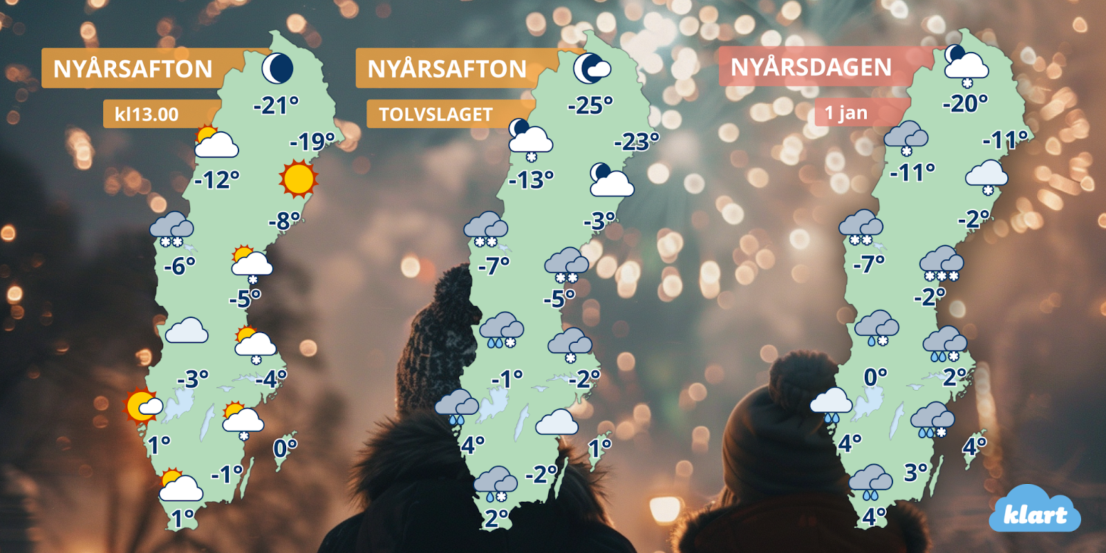Det här är en bred bild av nyårsvädret – lokala skillnader kan vara stora.