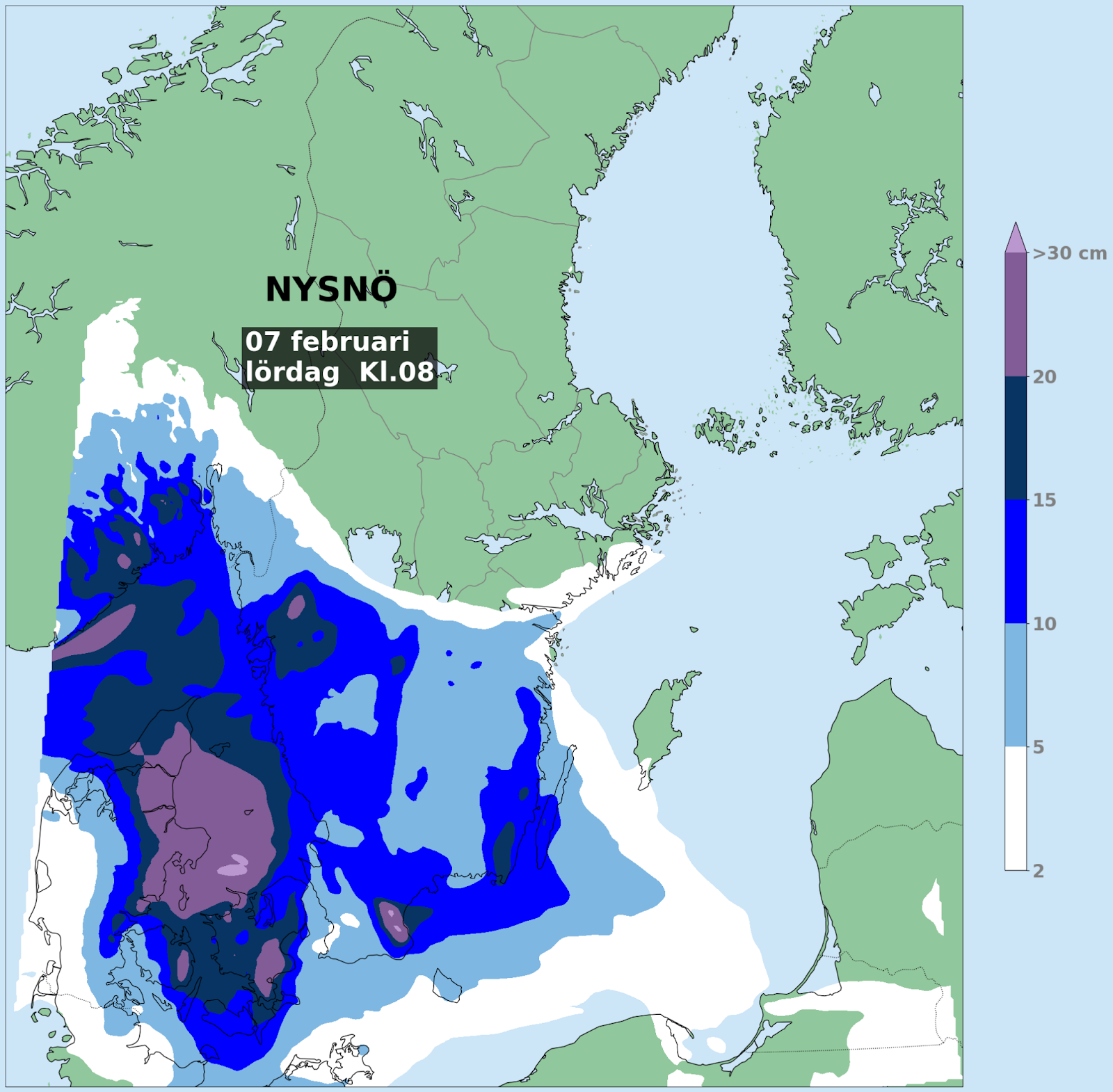 - 25 cm (observerat i Stiby den 5 feb): största snödjupet sedan februari 2014