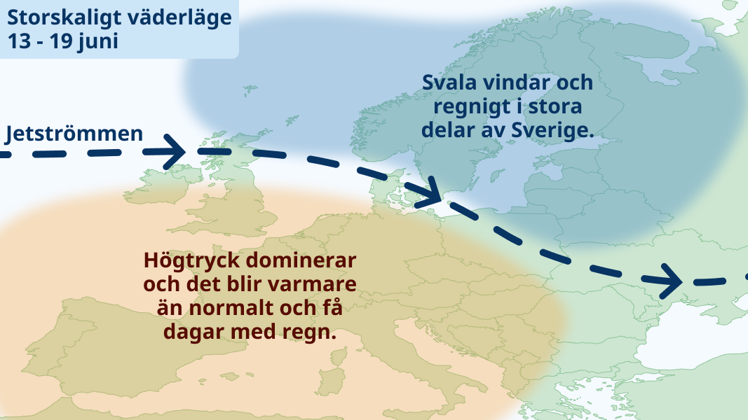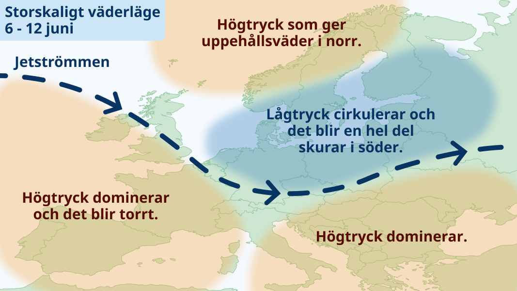 Det mesta tyder på att vädret i juni kommer bli ostadigt och något svalare än normalt, men vädret väntas skifta mycket i slutet av maj och början av juni vilket ökar osäkerheten i prognosen, det är därför bra att hålla sig extra uppdaterad på prognosen. I mitten av nästa vecka kommer det en uppdaterad version.