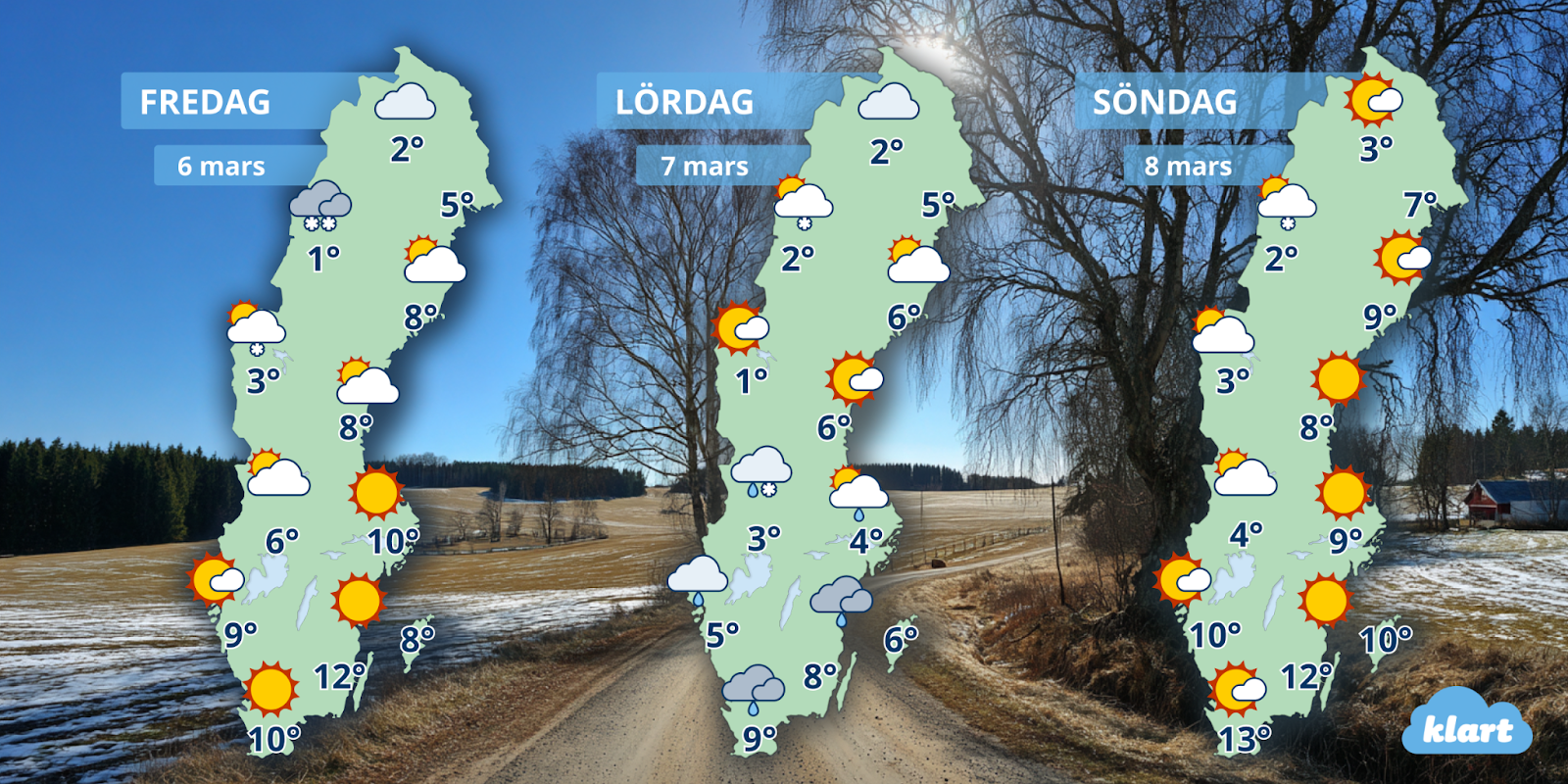 Prognos utfärdad torsdagen den 5 mars av meteorolog på Klart.