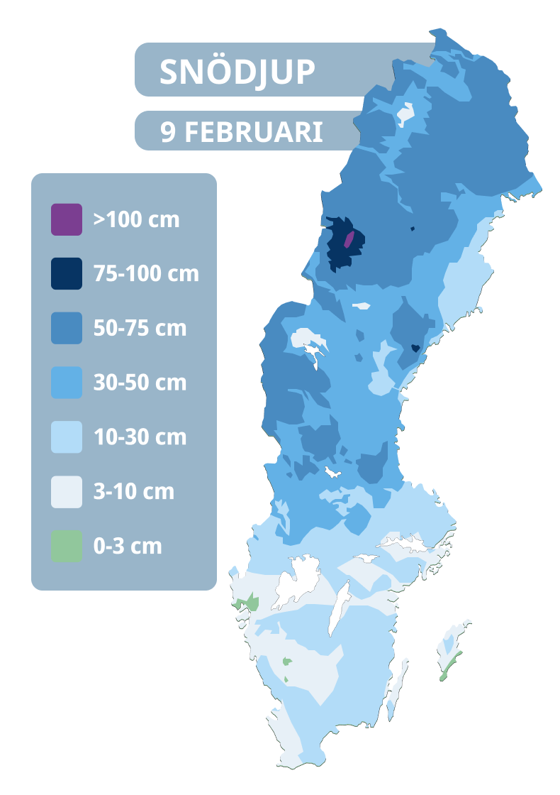 - Det största snödjupet (9 feb) är: 98 cm i Kittelfjäll, Lapplandsfjällen❄️