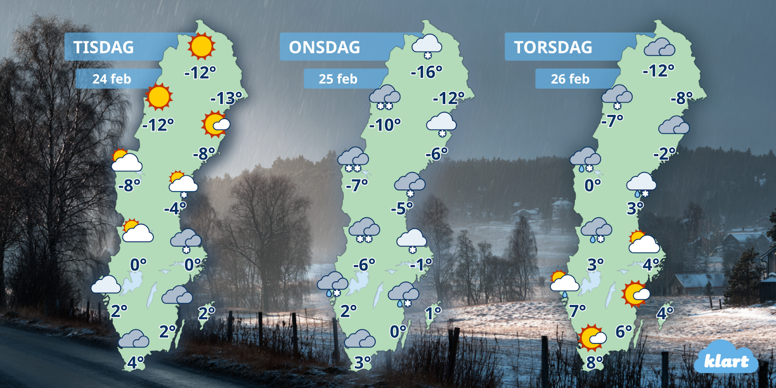 Prognos utfärdad måndagen den 23 februari av meteorolog på Klart.