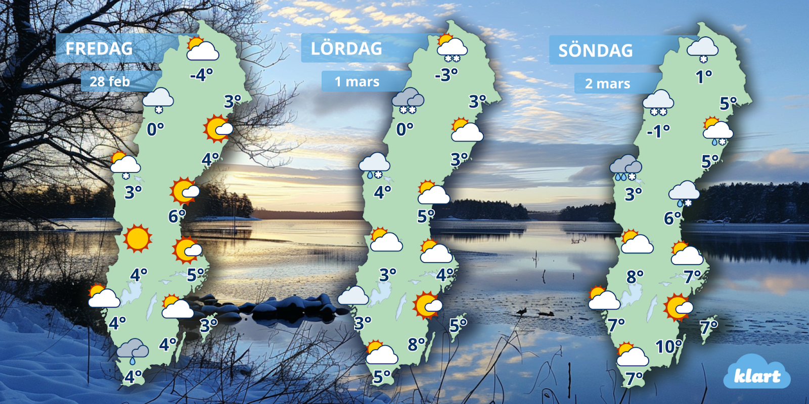 Prognos utfärdad torsdagen den 27 februari av meteorolog på Klart.