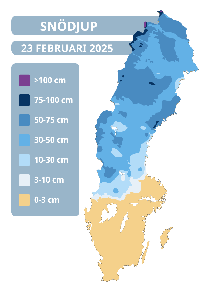 - Det största snödjupet är: 111 cm i Katterjåkk, Lapplandsfjällen (den 23 februari) ❄️