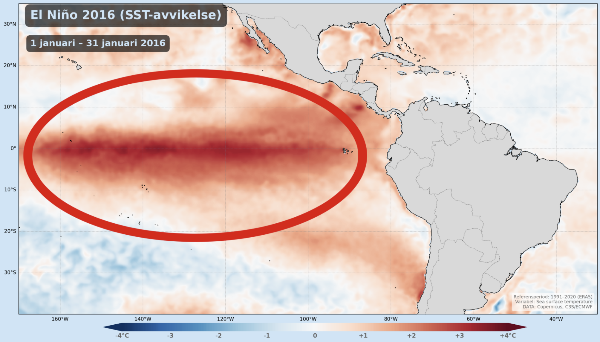 Generellt brukar El Niño ge den globala temperaturen en extra skjuts. Det ökar också sannolikheten för nya värmerekord.