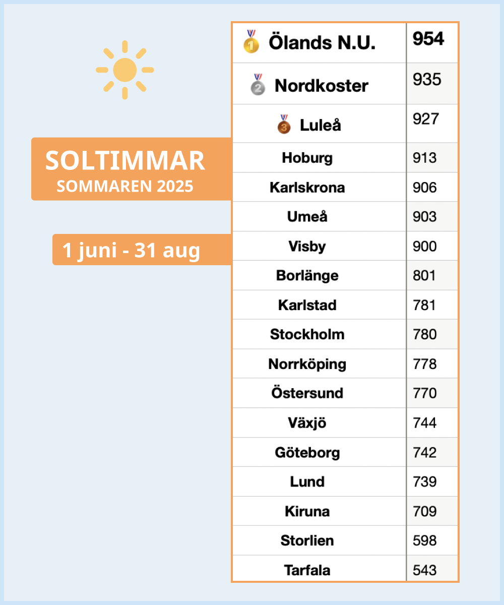 När semestern är nära, badkläderna framme och grillen tänd – då undrar många: Var i Sverige skiner solen mest? Nu följer vi sommarens alla strålar i jakten på Sveriges solstad 2025!