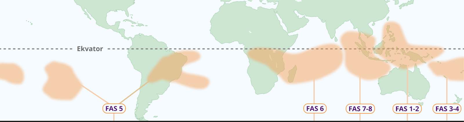 - Fas 1 - 2: MJO befinner sig över västra Indiska oceanen. Detta kan leda till ökad nederbörd i regioner som östra Afrika och södra Indien.