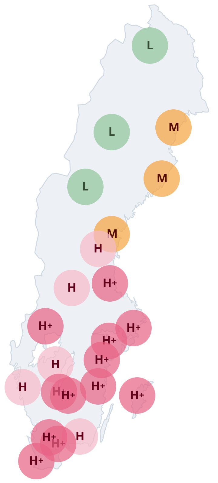 = Extra hög = Hög = Måttlig = Låg = Inga halter = Ingen mätning