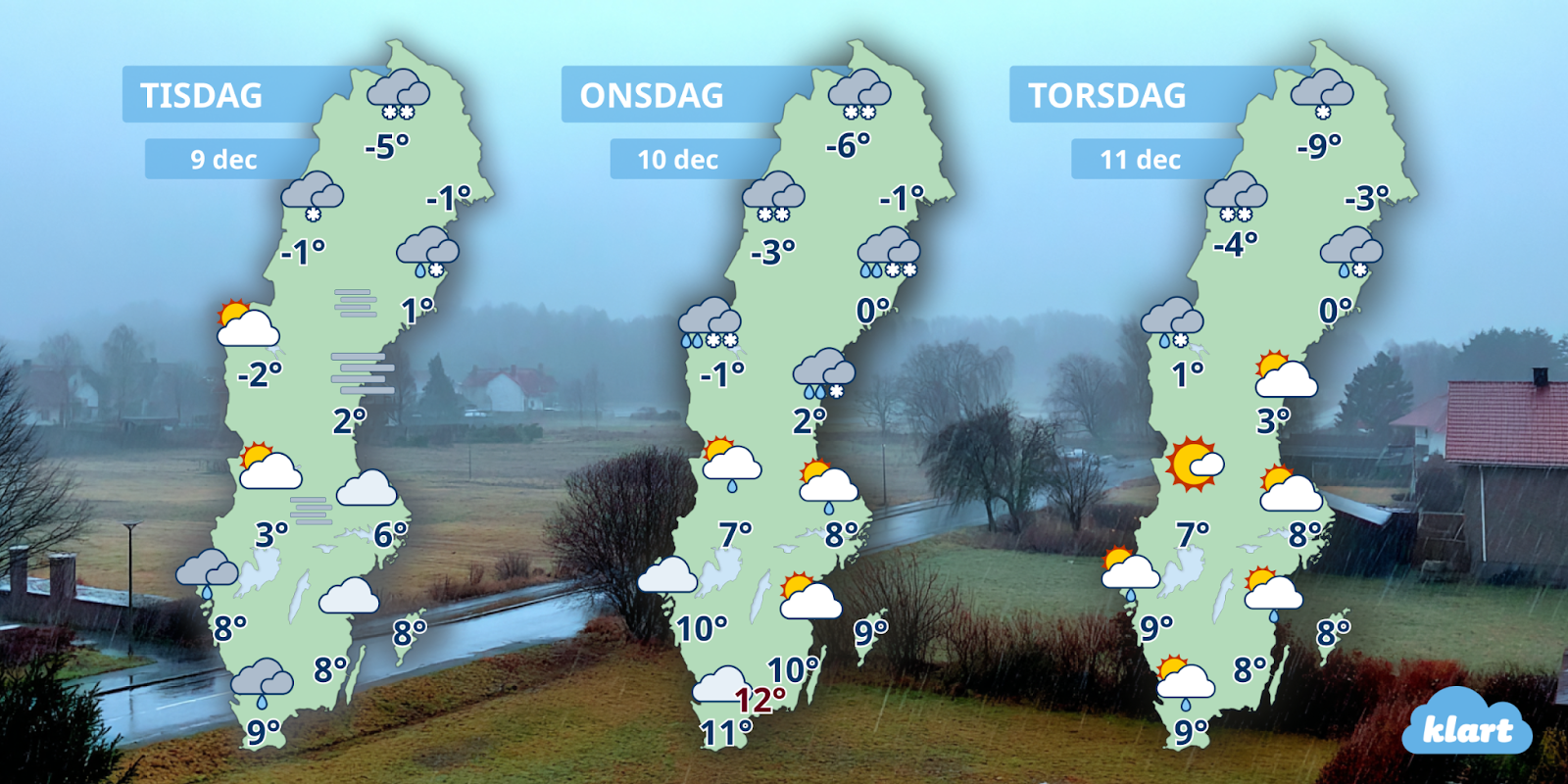 Prognos utfärdad måndagen den 8 december av meteorolog på Klart.